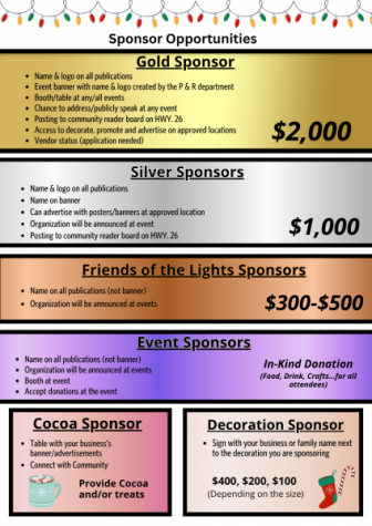 We are still accepting Gold, Silver and Friends of the Lights Sponsors. Your financial contribution helps the City of Sandy provide this popular event. To register as a sponsor fill out the Sponsor Application (downloadable at the bottom of this web-page) and return to the Sandy Community and Senior Center by October 10th, 2025. Please mark the paperwork with "Attn: Carol Cohen" and make checks payable to "City of Sandy".
